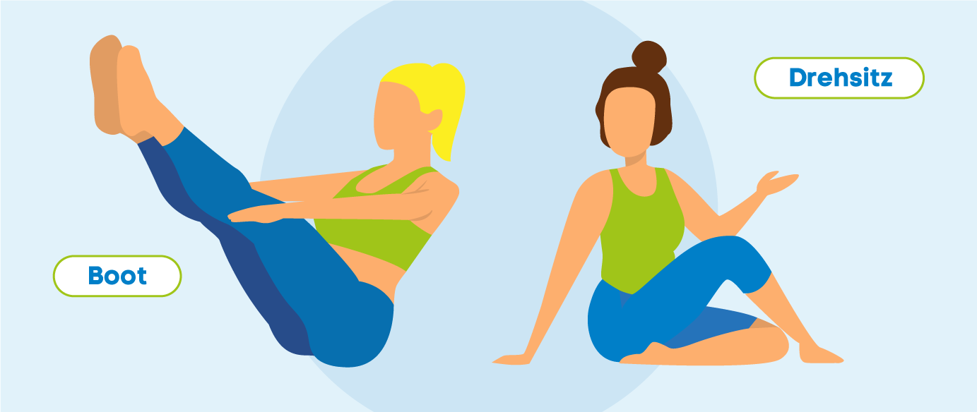 Auch zu Hause können Sie Wasseryoga praktizieren. Einige Übungen wie das „Boot“ oder den „Drehsitz“ (siehe Zeichnung) funktionieren in der heimischen Badewanne hervorragend. Besonders liegende oder sitzende Positionen sind geeignet.