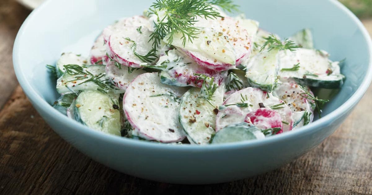 Gurken-Radieschen-Salat mit Schnittlauch und Dill (4 Portionen)